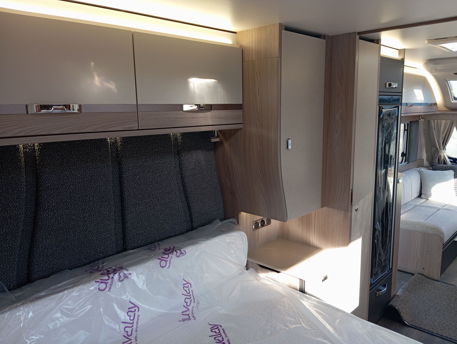 Schmaler Doppelachser mit Queensbett und Heckbad